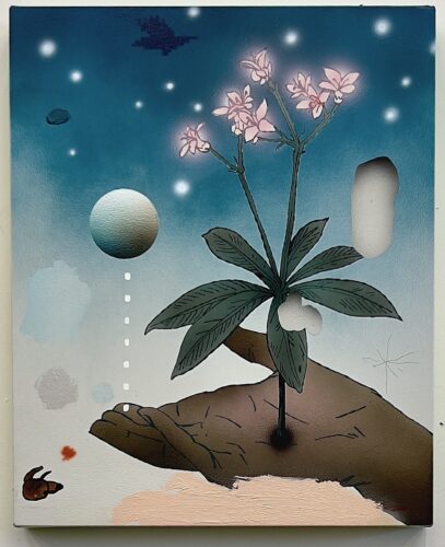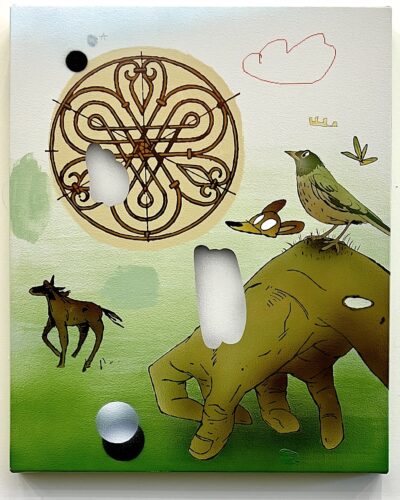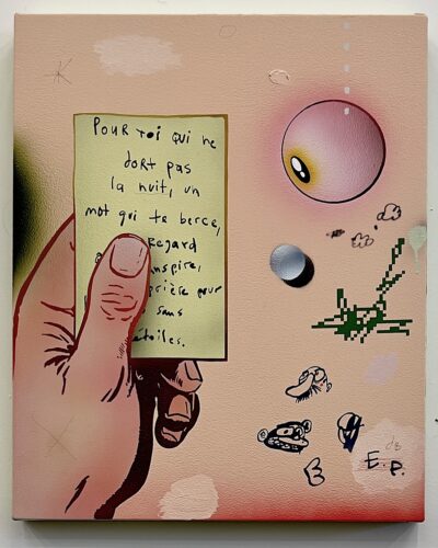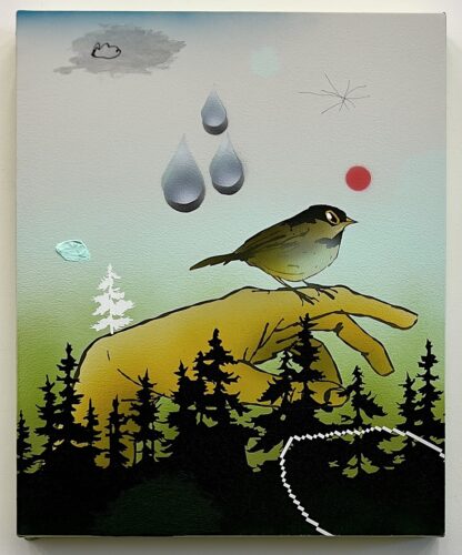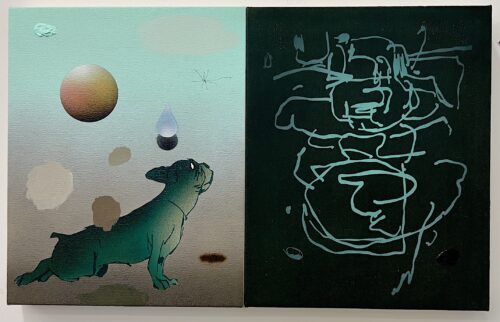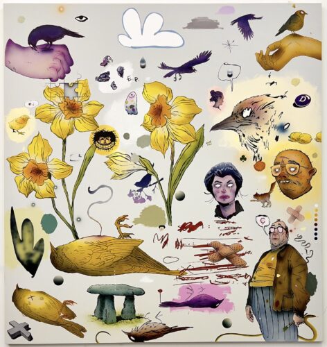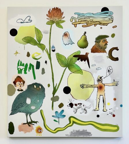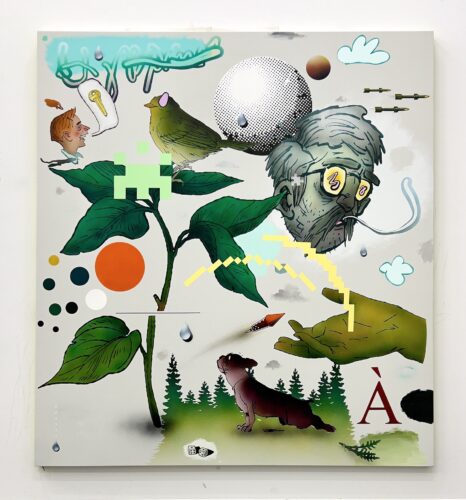 La peinture de Dan Brault consiste en un exaltant assemblage de codes, de styles et d’esthétiques, révélant la sensibilité baroque de l’artiste. Relevant aussi bien de l’exploration de l’espace et de la métaphysique que de l’ivresse et de l’onirique, ses compositions par accumulation font naître des univers en suspension, vivotant dans les méandres fugaces de la représentation picturale.