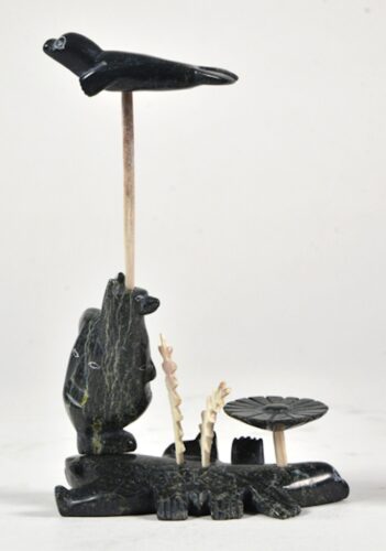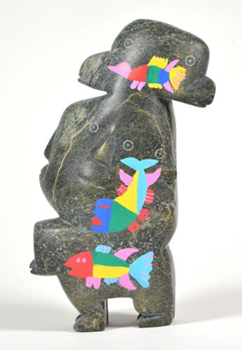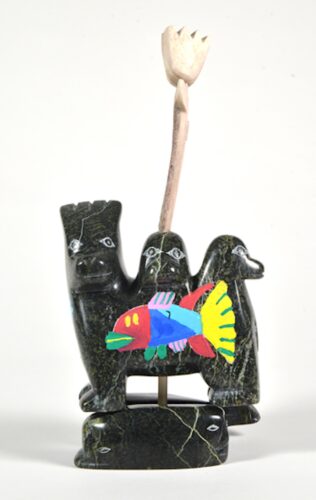 Âgé de 38 ans et établi à Kinngait, au Nunavut, Pitseolak Qimirpik est à la tête d’une génération florissante de jeunes artistes inuits. Issu d’une lignée de sculpteurs, il se forme à cet art dès son plus jeune âge auprès de son père, Kellypalik Qimirpik, en travaillant à ses côtés comme apprenti. À 13 ans, il réalise ses premières sculptures et se distingue rapidement par son style unique qui lui vaut une reconnaissance sur la scène artistique canadienne. Fantasmagorique, inventif et empreint d’humour, son univers fusionne audacieusement les traditions inuites et les symboles de la culture populaire nord-américaine.