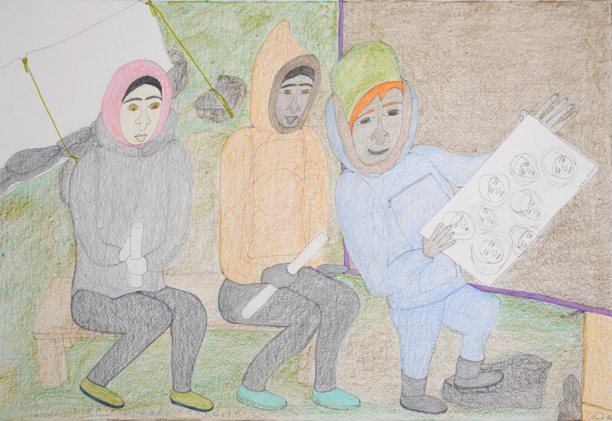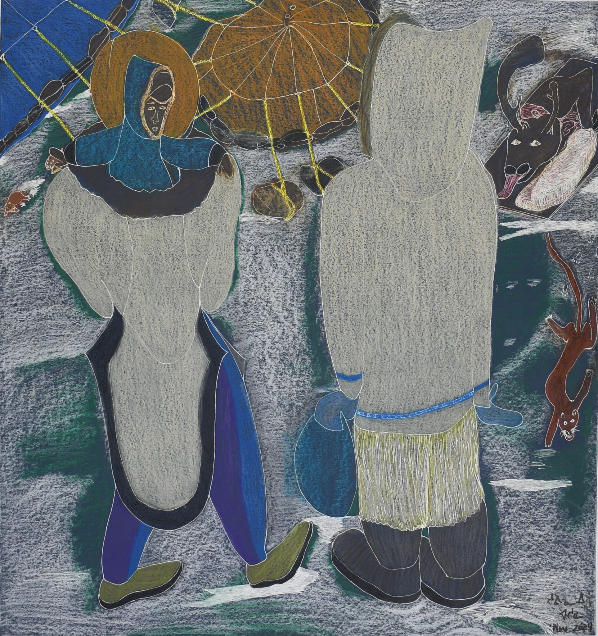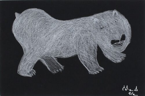 In her exuberant compositions, she brings her mystical visions to life—at times grotesque, unsettling, playful, or phantasmagorical—and offers a sensitive, almost cinematic perspective on the Arctic’s rapidly changing landscape. Her drawings celebrate the richness of Inuit culture while also bearing witness to the profound upheavals experienced by this Northern people, who in less than a century have shifted from a nomadic to a sedentary way of life.