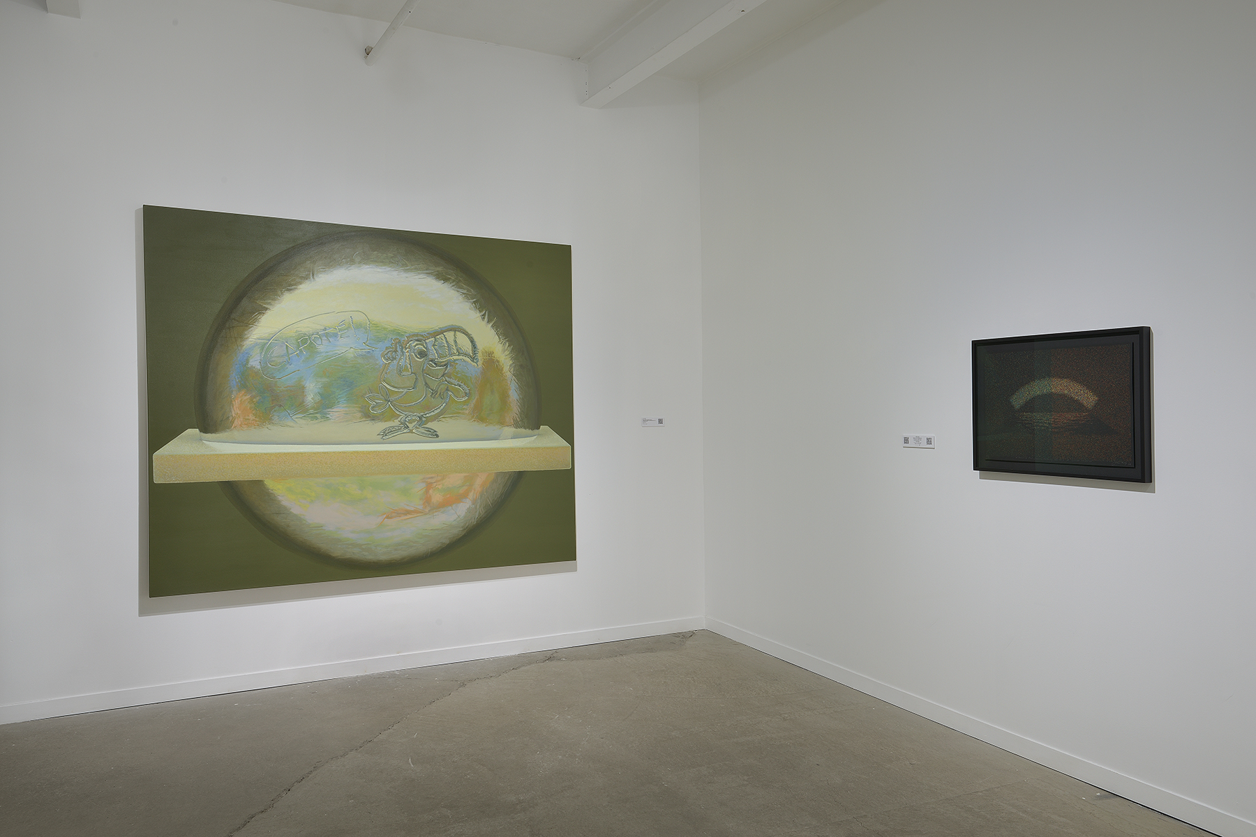 By quoting Monet, Boily takes us back to the origins of the idea of color mixing based on juxtaposition, to Seurat’s pointillism, and to the modern matrix image (bitmap). The painting then participates, like inverted binoculars, in taking the necessary distance to observe the phenomenon.