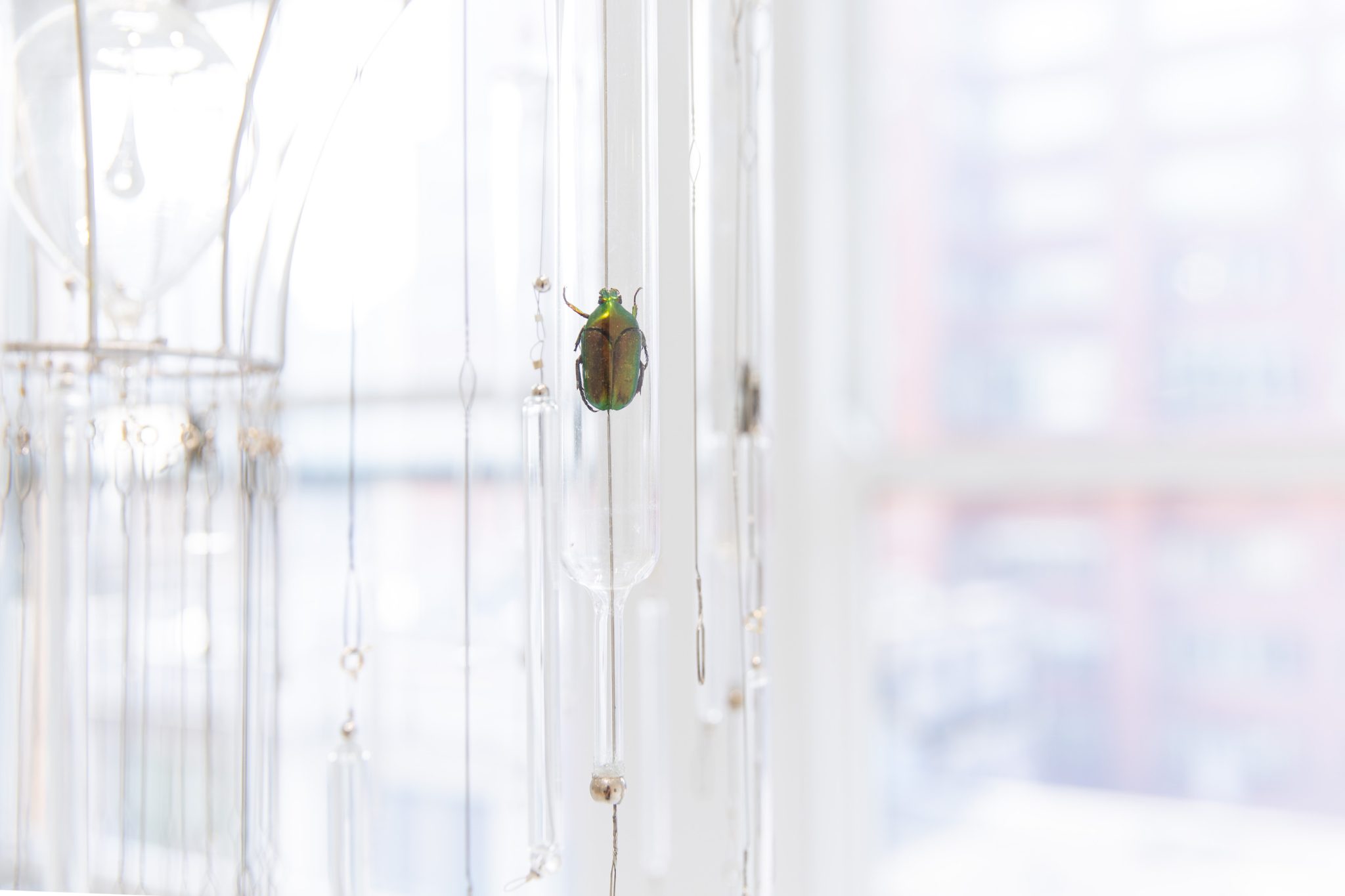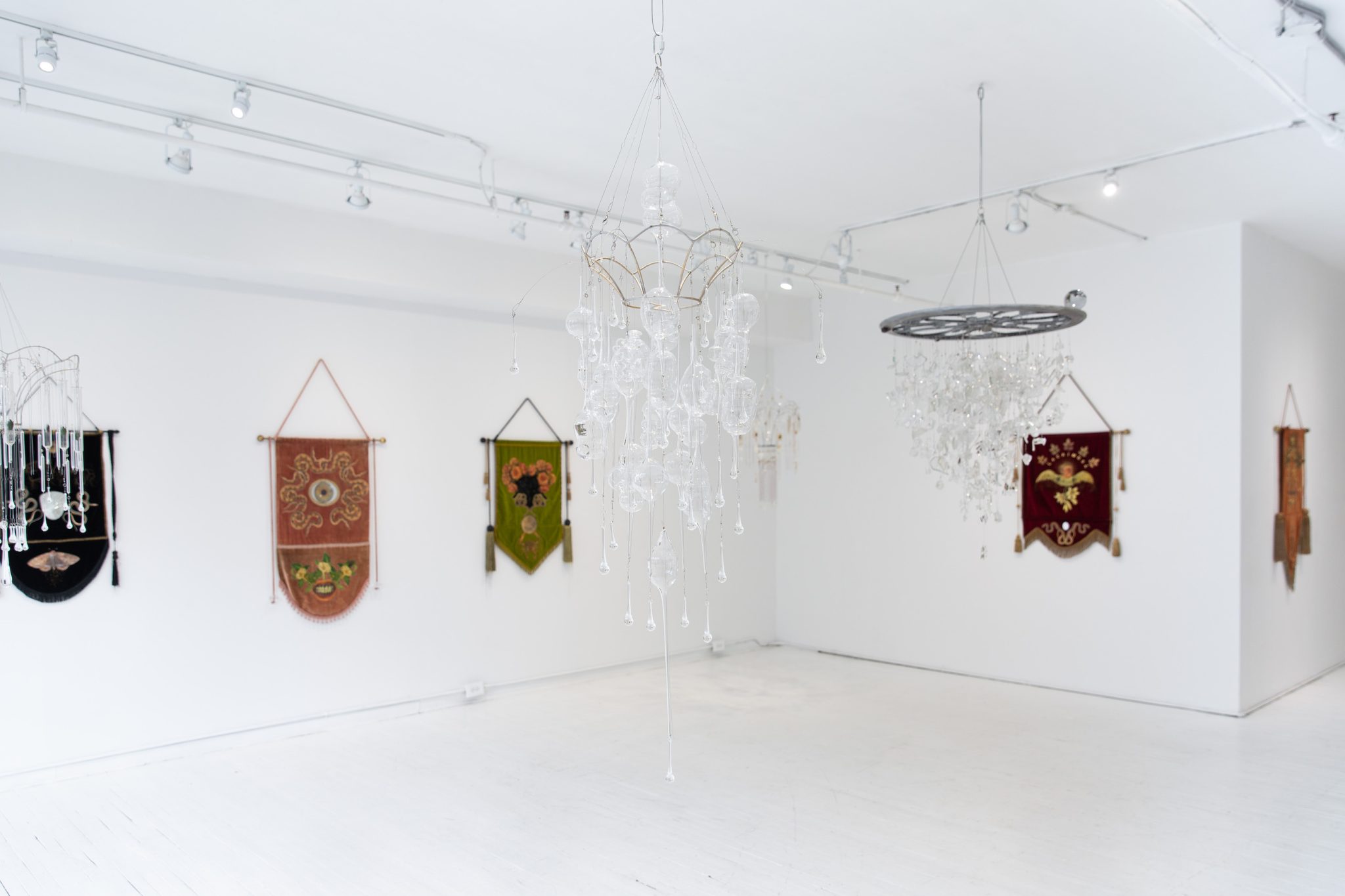 Displaying exceptional craftsmanship and a resolutely obsessive attention to detail, the artist has once again produced extremely delicate hanging pieces using objects found at second-hand shops. Through her masterful art of accumulation and misappropriation, Claudie becomes an alchemist of the contingent.