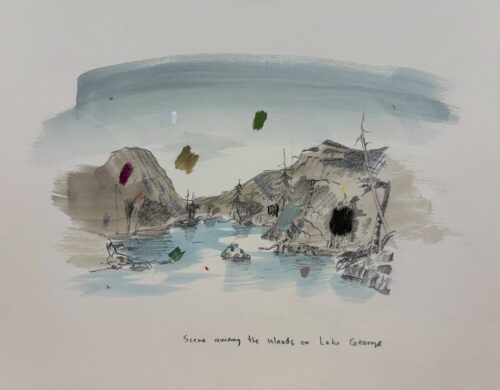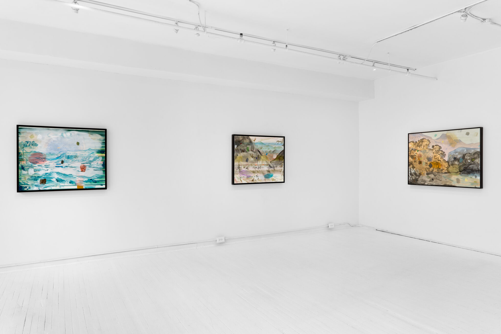 À travers ce nouveau corpus, François Simard approfondit sa réflexion sur la mémoire et l’inéluctable passage du temps en faisant dialoguer archives intimes et collectives. L’artiste poursuit son travail autour des paysages d’Amérique du Nord en réinterprétant des gravures de l’artiste britannique William Henry Bartlett, tirées de l’ouvrage American Scenery, publié vers la fin du XIXᵉ siècle. Ces représentations romantiques et idéalisées d’une nature dite « sauvage » et des vastes panoramas des États-Unis participaient à la construction d’un imaginaire triomphant et célébraient l’essor d’une puissance mondiale naissante, présentée comme une terre d’opportunités et de promesses.