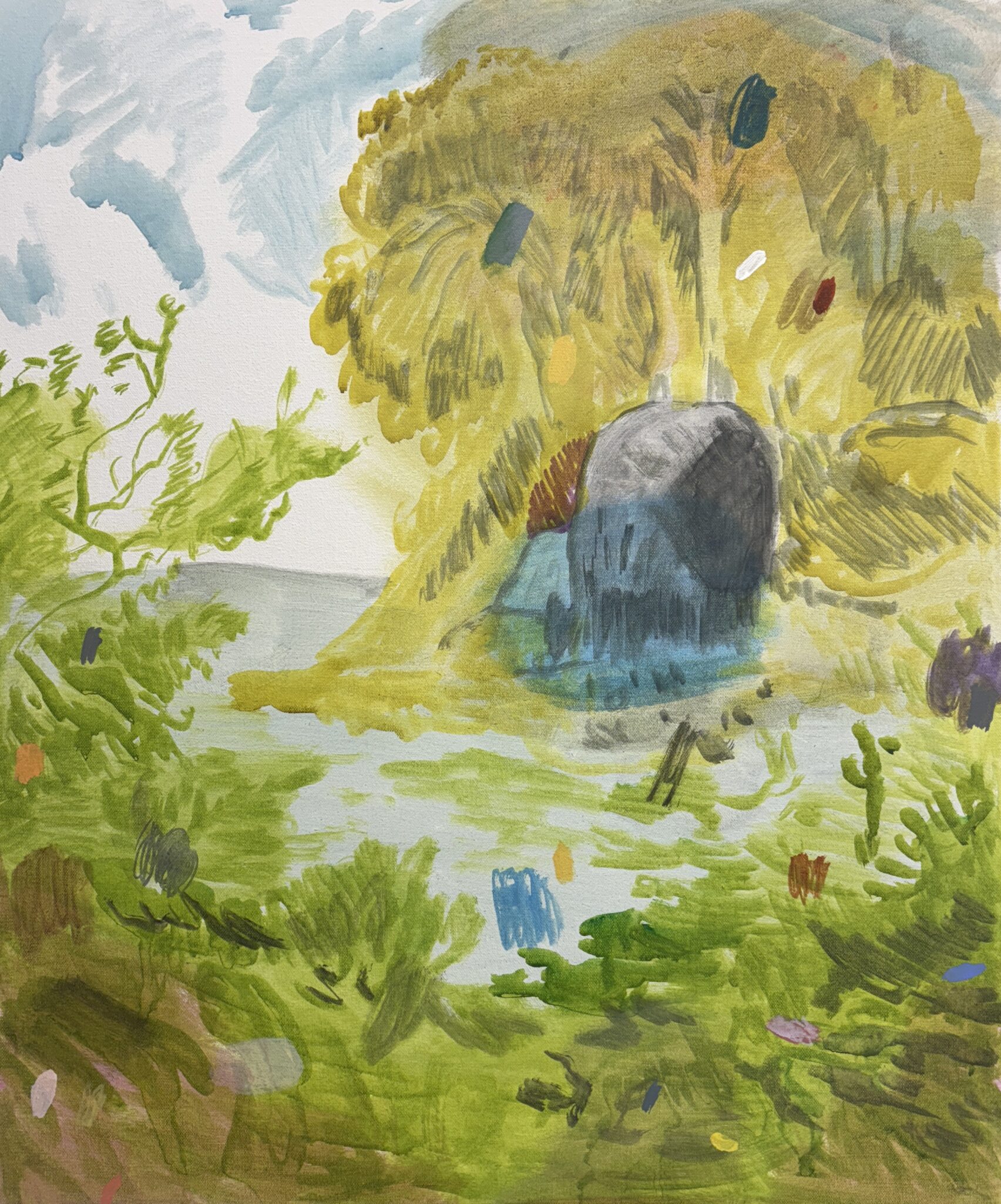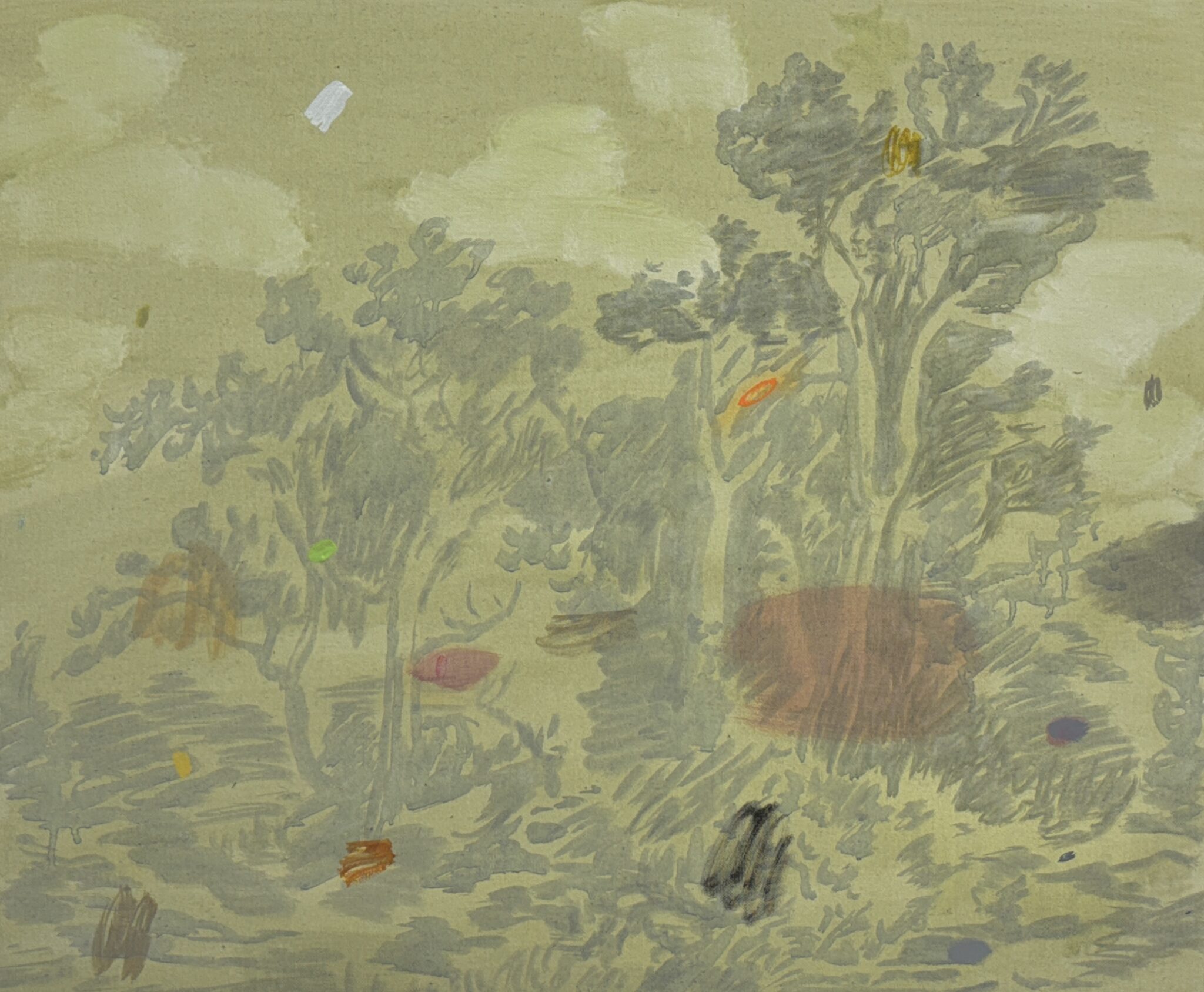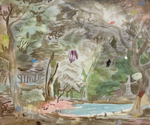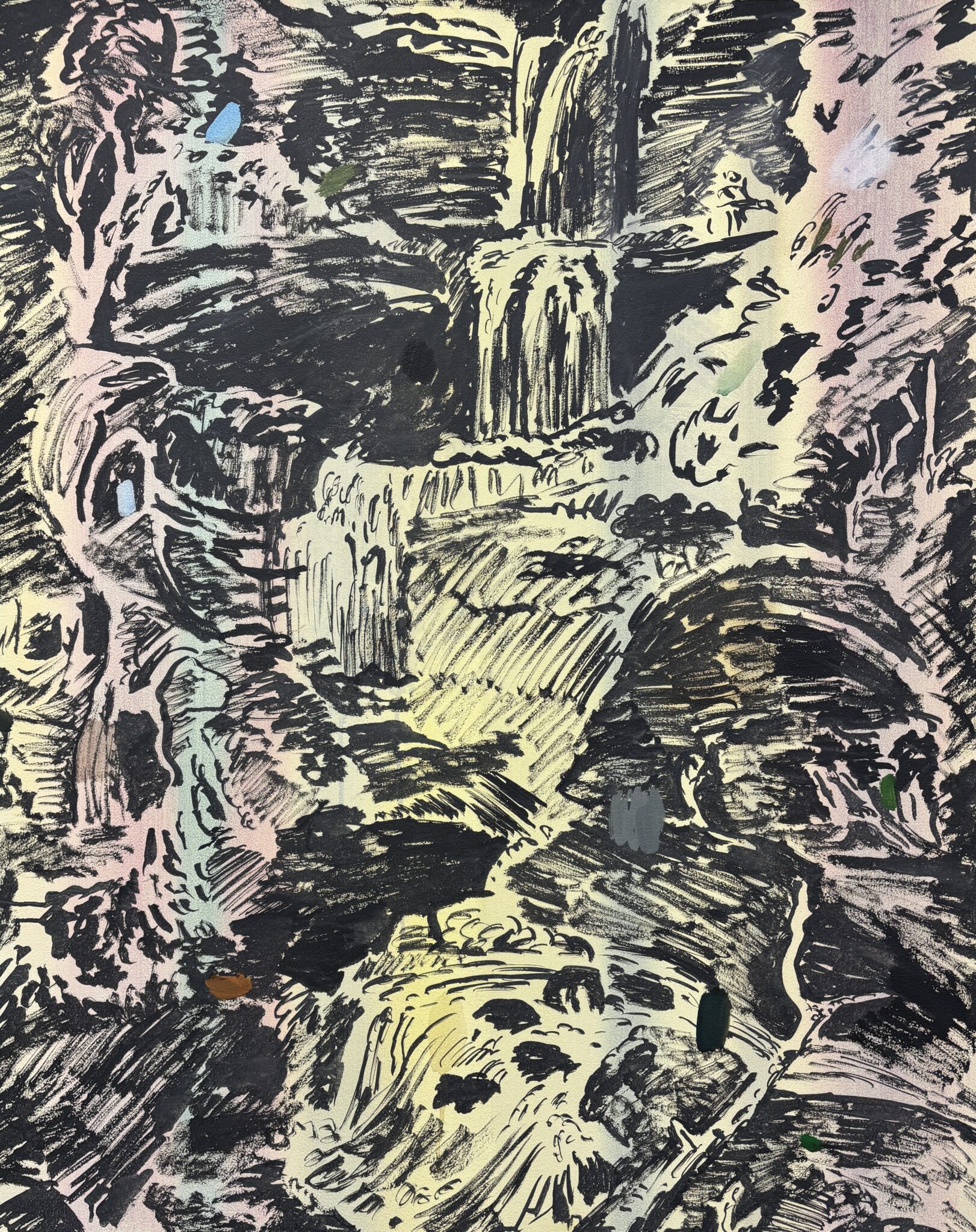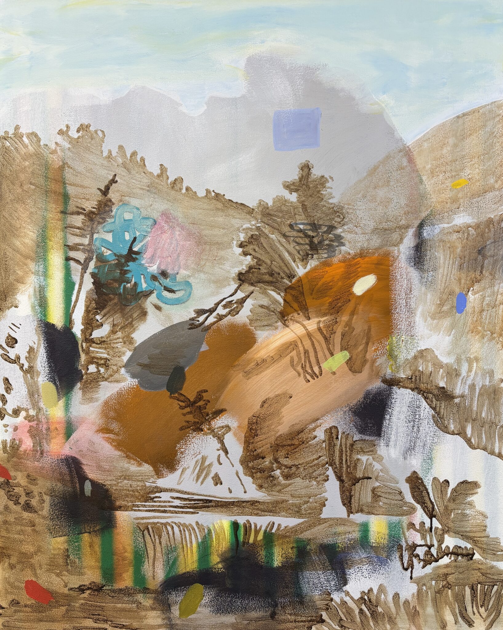 Dans cette nouvelle série, son travail sur l’archive et la survivance des images s’enrichit d’une dimension plus personnelle et introspective. À la manière d’un palimpseste, François Simard revisite ses propres œuvres, des abstractions réalisées dans les années 2000. Par un procédé de recouvrement, la peinture initiale transparaît en filigrane, affleurant de manière plus ou moins perceptible d’une toile à l’autre et révélant les continuités et les transformations qui traversent sa pratique. Les paysages de Bartlett entrent ainsi en résonance avec ses propres toiles de jeunesse, réactivées comme autant de reliques du passé.