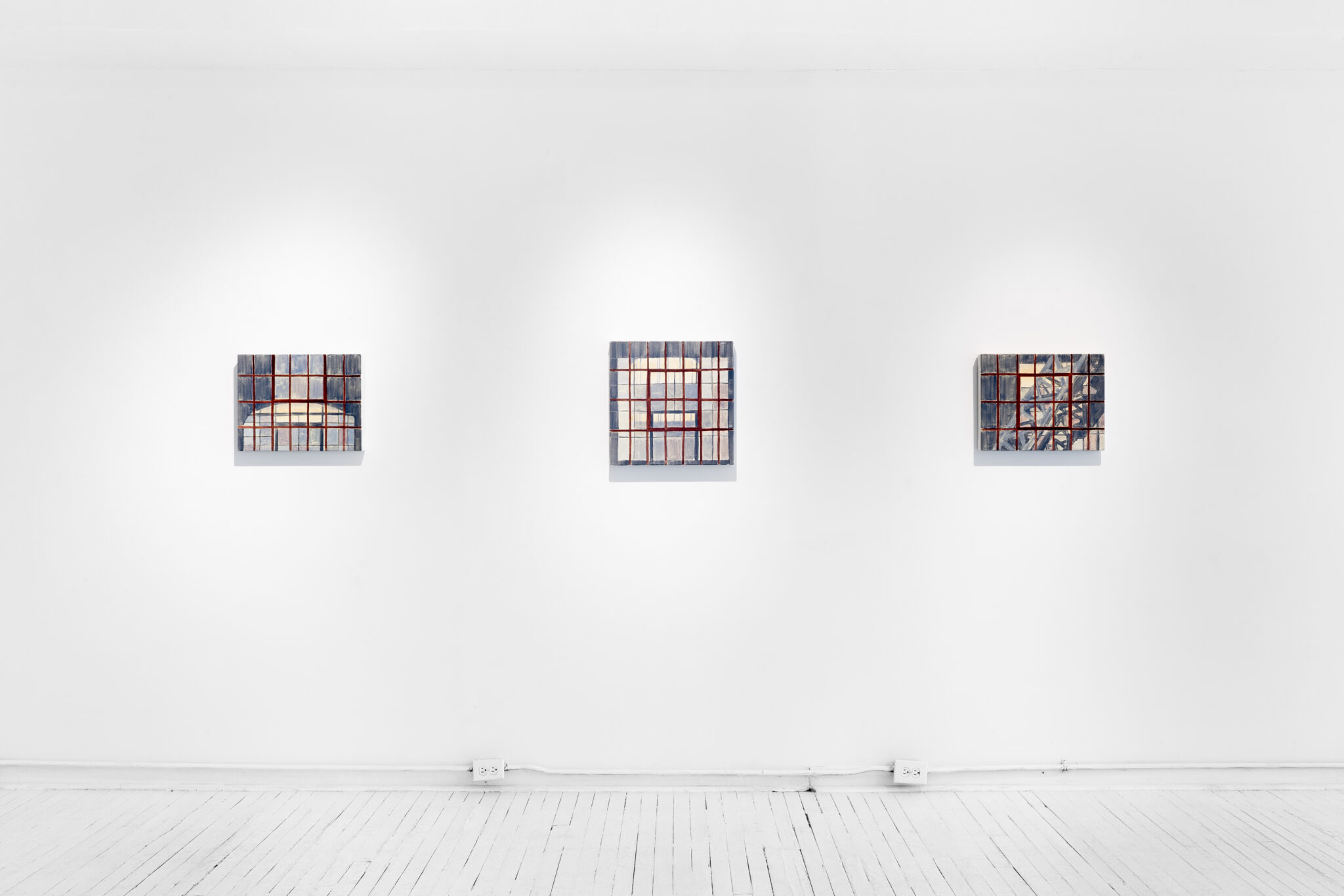 De ces explorations naît une série de photographies d’architectures industrielles, recadrées, agrandies, puis transposées en peinture. Chaque œuvre se présente comme un fragment autonome, détaché de son contexte d’origine. Les processus d’agrandissement numérique et de recadrage transforment les images en surfaces ambiguës, frôlant parfois l’abstraction. Bruit de couleur, flou photographique et aberrations chromatiques, des caractéristiques propres à la photographie, deviennent des éléments fondamentaux de ses toiles. D’une œuvre à l’autre, un jeu d’échelle s’opère dans l’espace d’exposition. Chez Alexanne Dunn, il ne s’agit pas tant de documenter les lieux que de faire émerger chez le spectateur une impression, une construction sensible, à la fois fragmentaire et formelle d’un endroit, en mobilisant la mémoire, en l’invitant à combler le vide.