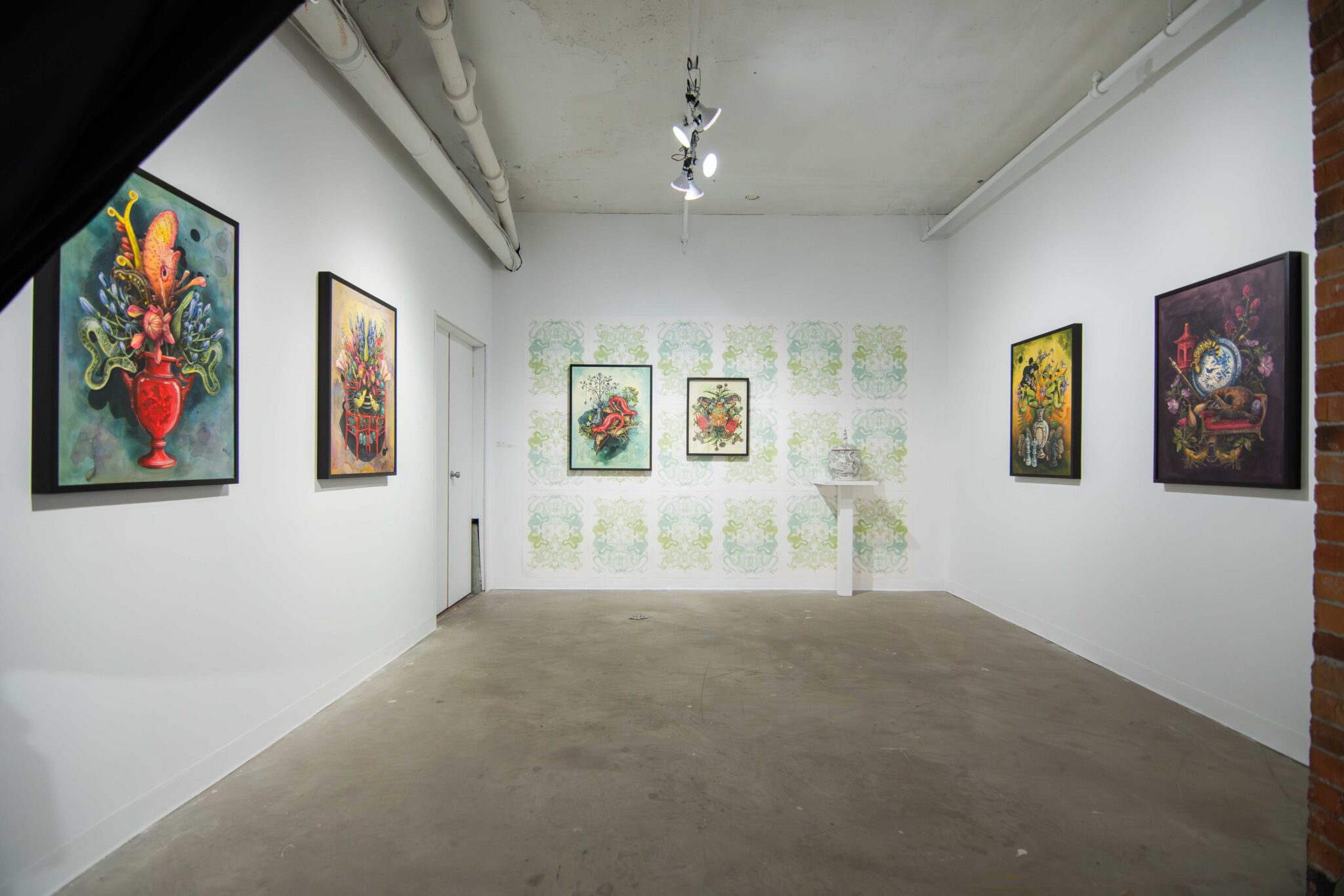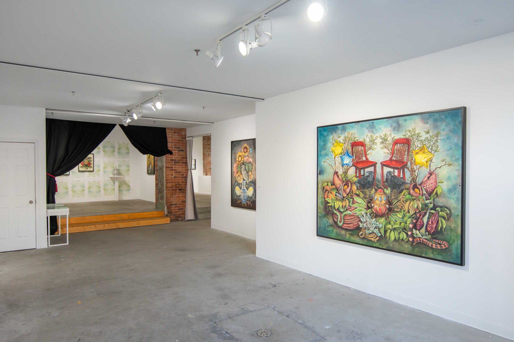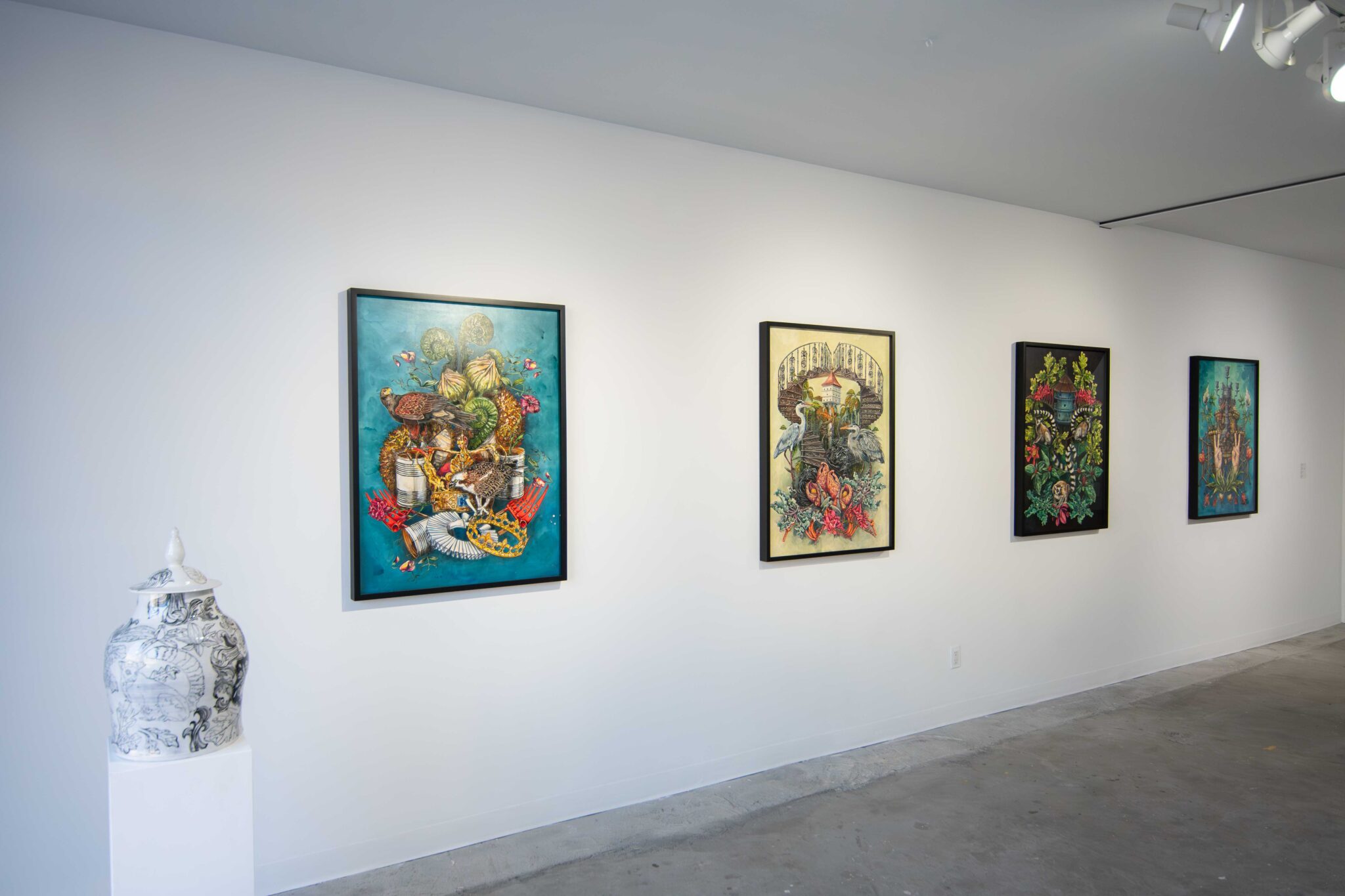 Dans cette exposition, Cynthia Dinan-Mitchell nous invite à connecter avec notre environnement et à ressentir la rencontre entre l’étrangeté, la liberté, la séduction et l’humour. Dans ses compositions foisonnantes, Cynthia célèbre la faune et la flore tout en y intégrant des éléments familiers afin de révéler la beauté et la magie insoupçonnées qui se cachent au cœur du quotidien. Employant la peinture, la sérigraphie et la céramique, elle crée des univers surréalistes où le merveilleux s’entremêle avec l’ordinaire, tissant ainsi des récits visuels surprenants.